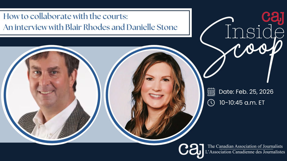 Join Danielle Stone, senior legal counsel at CBC and past CMLA president, and Blair Rhodes, producer at CBC News, to learn how journalists can collaborate with those working in the court system. Both are members of media liaison committees and have spent years navigating Canadian legal systems - Rhodes, covering the courts, and Stone, defending those who do so. While court access procedures vary from province to province, journalists from across the country can learn how to form relationships with people working in the courthouse, how to access their province’s legal resources and what federal legislation protects them.